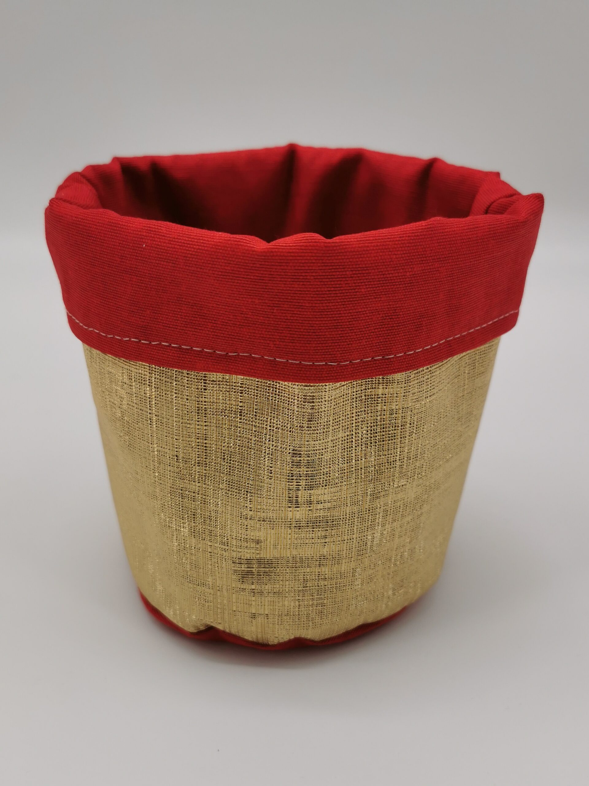 Panier déco Noël doré intérieur rouge tissu enduit 13 cm