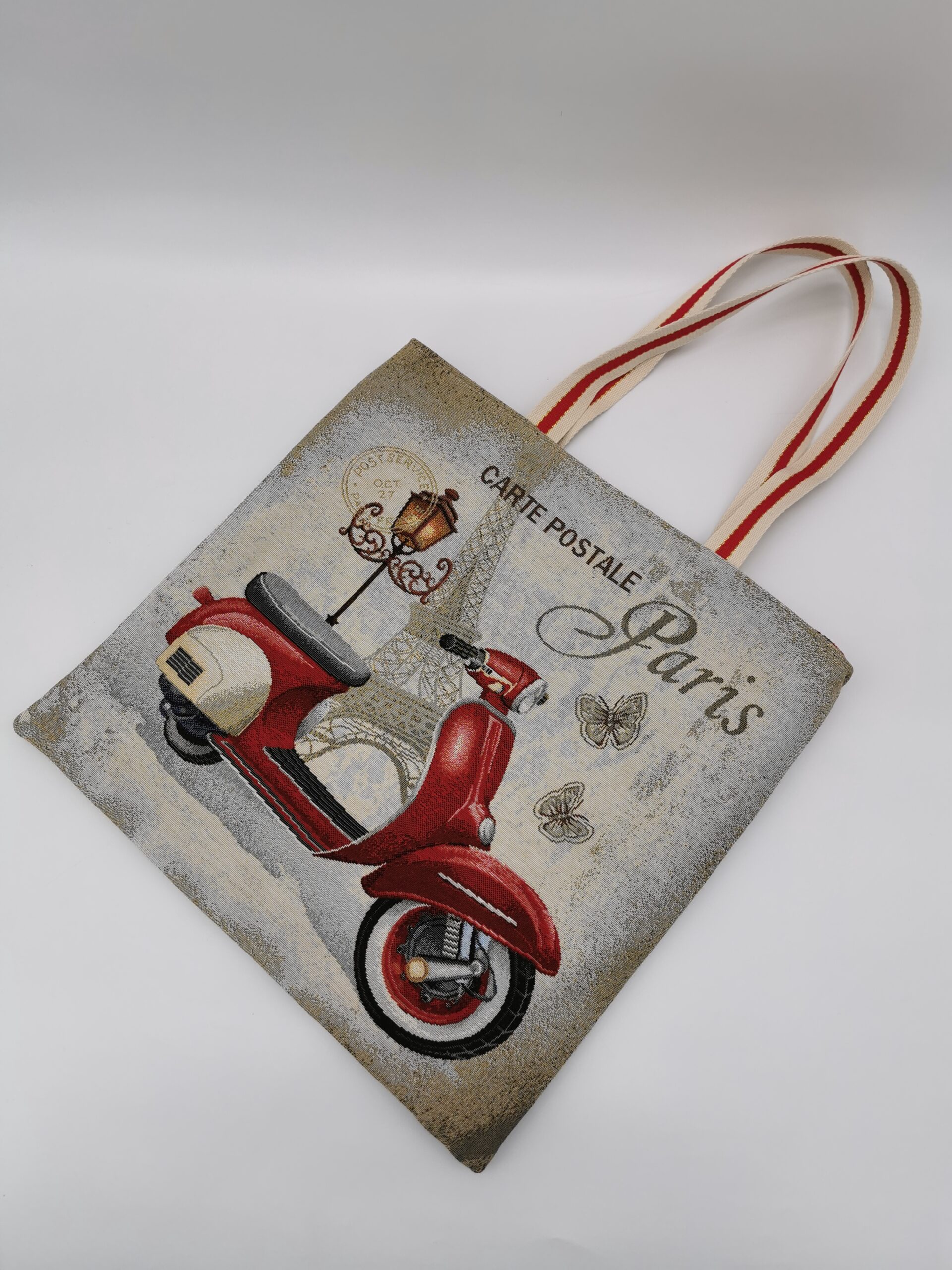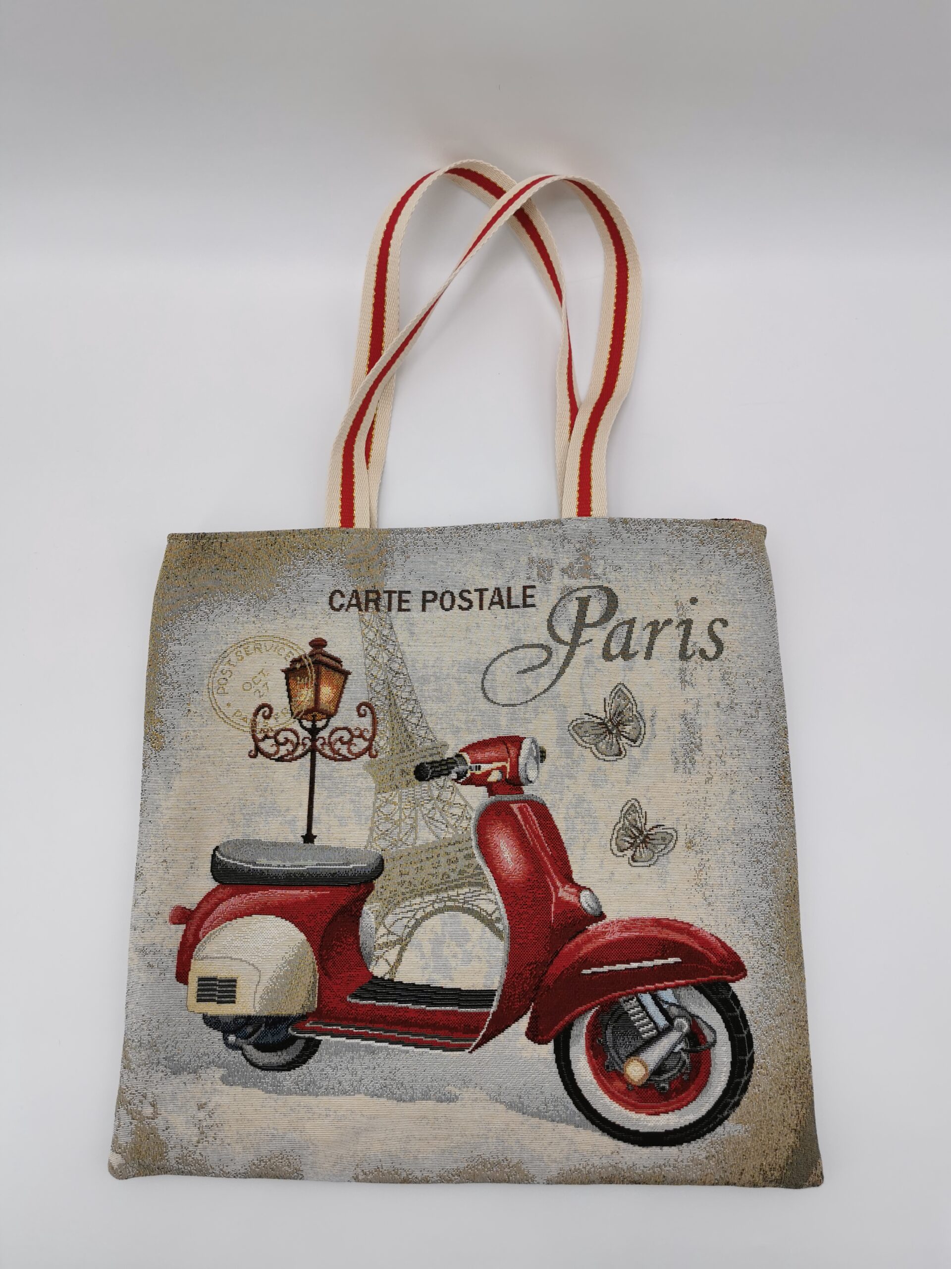 Tote bag collection Evasion extérieur carrés jacquard « Carte Postale Paris »