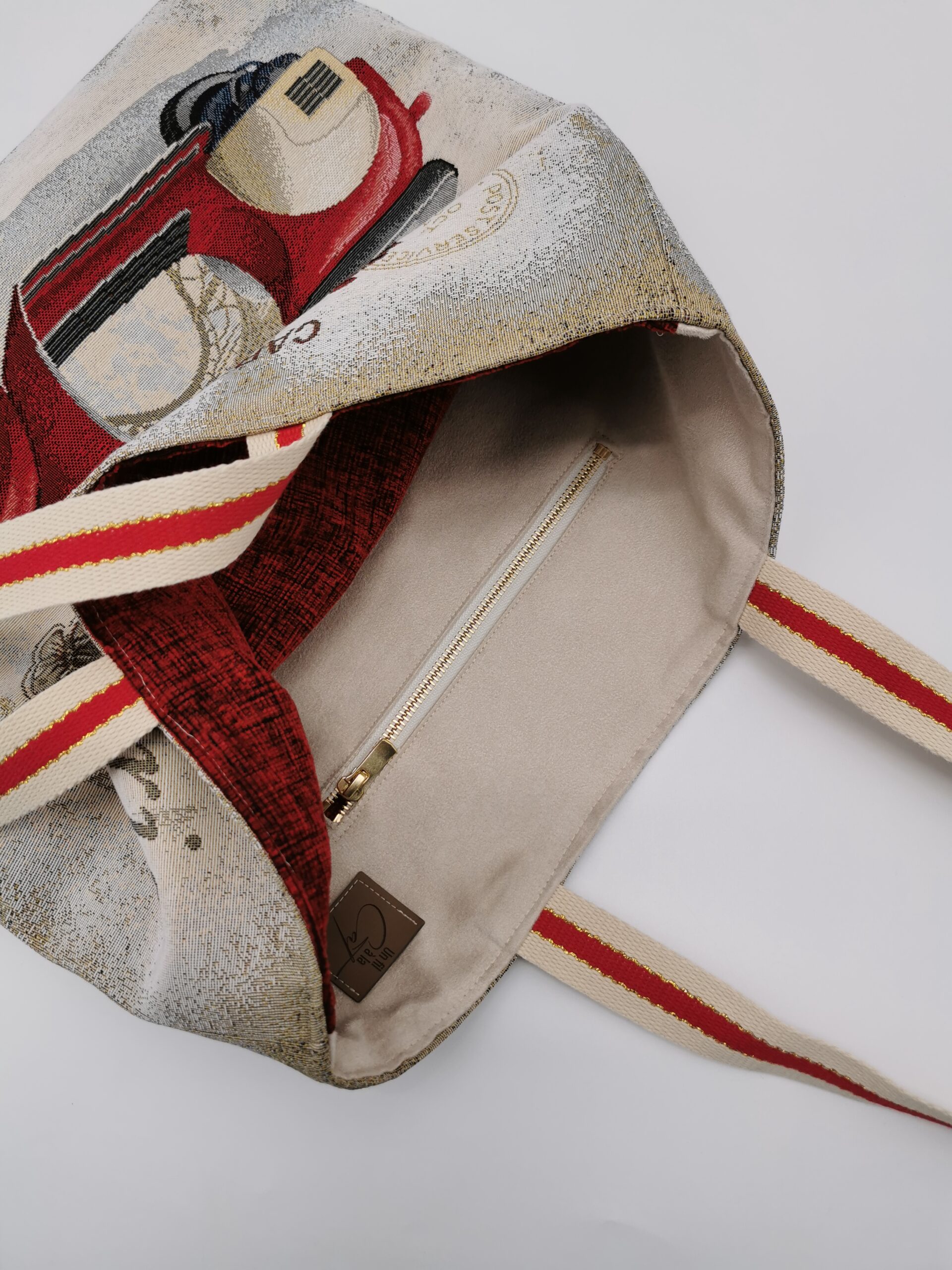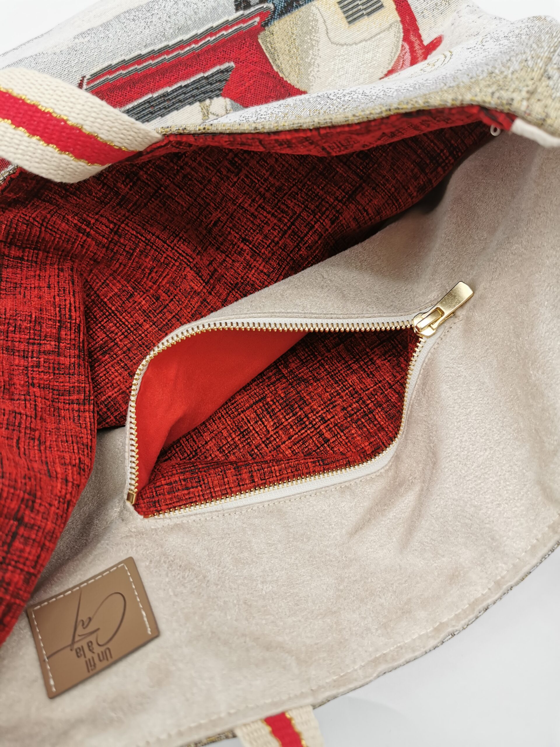 Tote bag Collection Savane Lion multicolore intérieur suédine rouge et noire