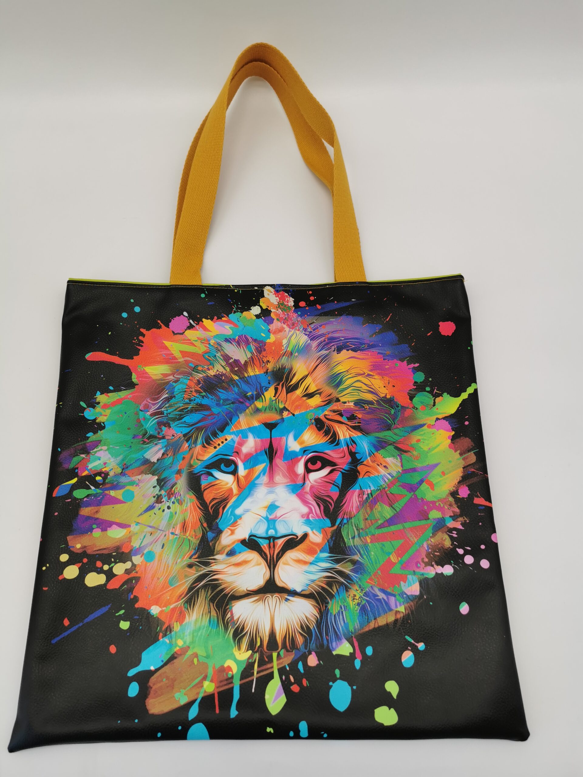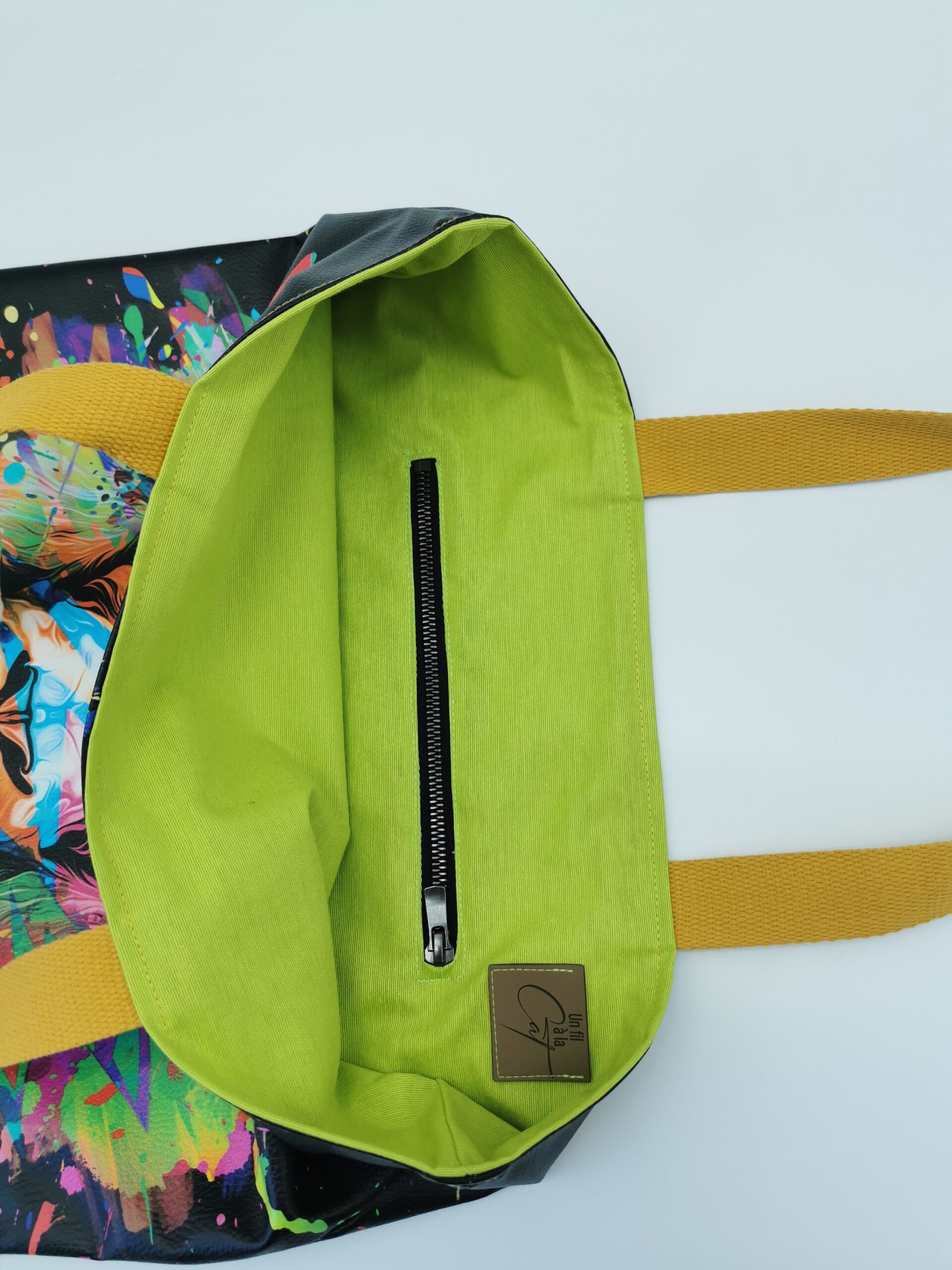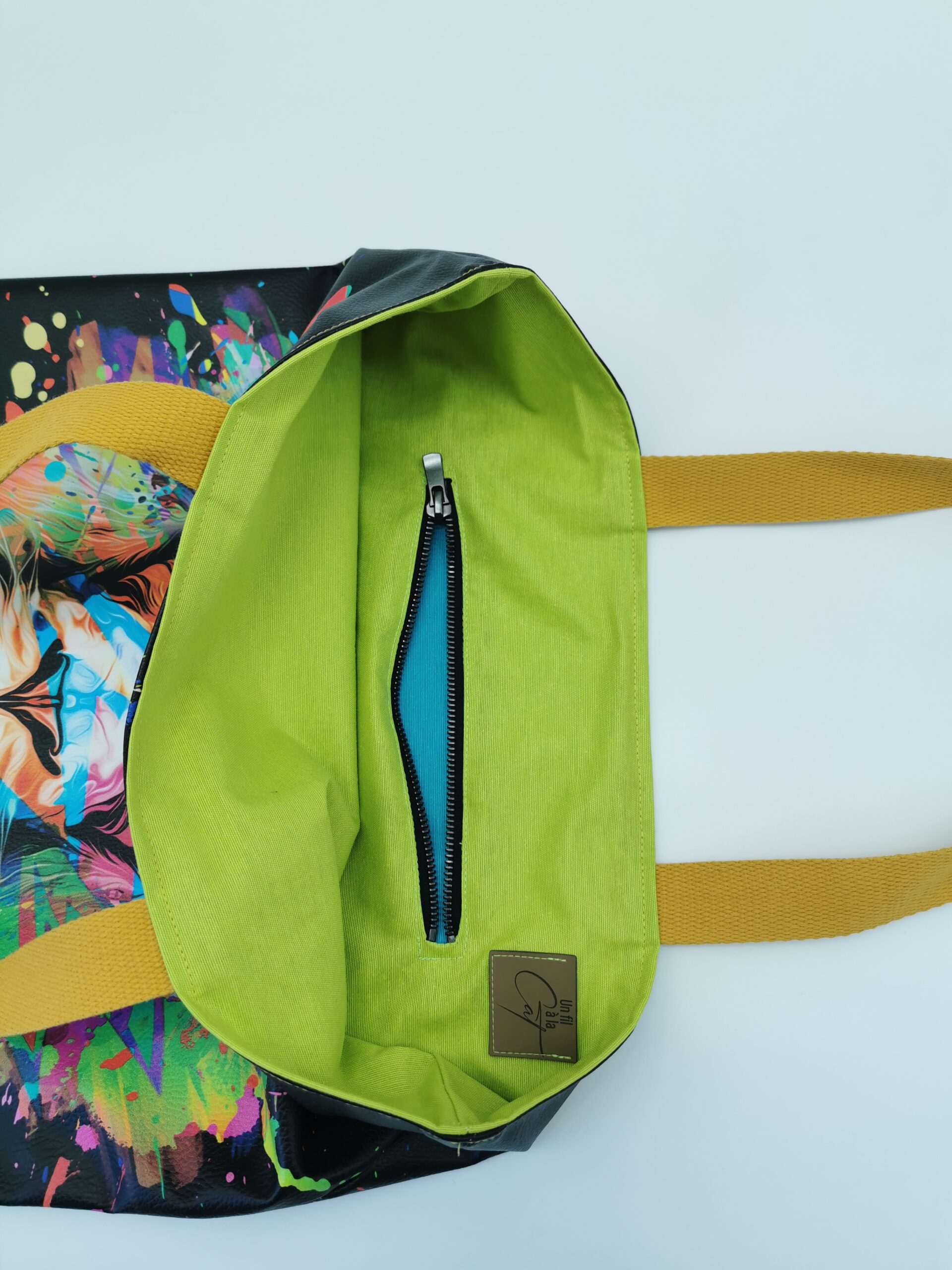 / Tote bag Collection Savane Lion multicolore intérieur vert fluo déperlant